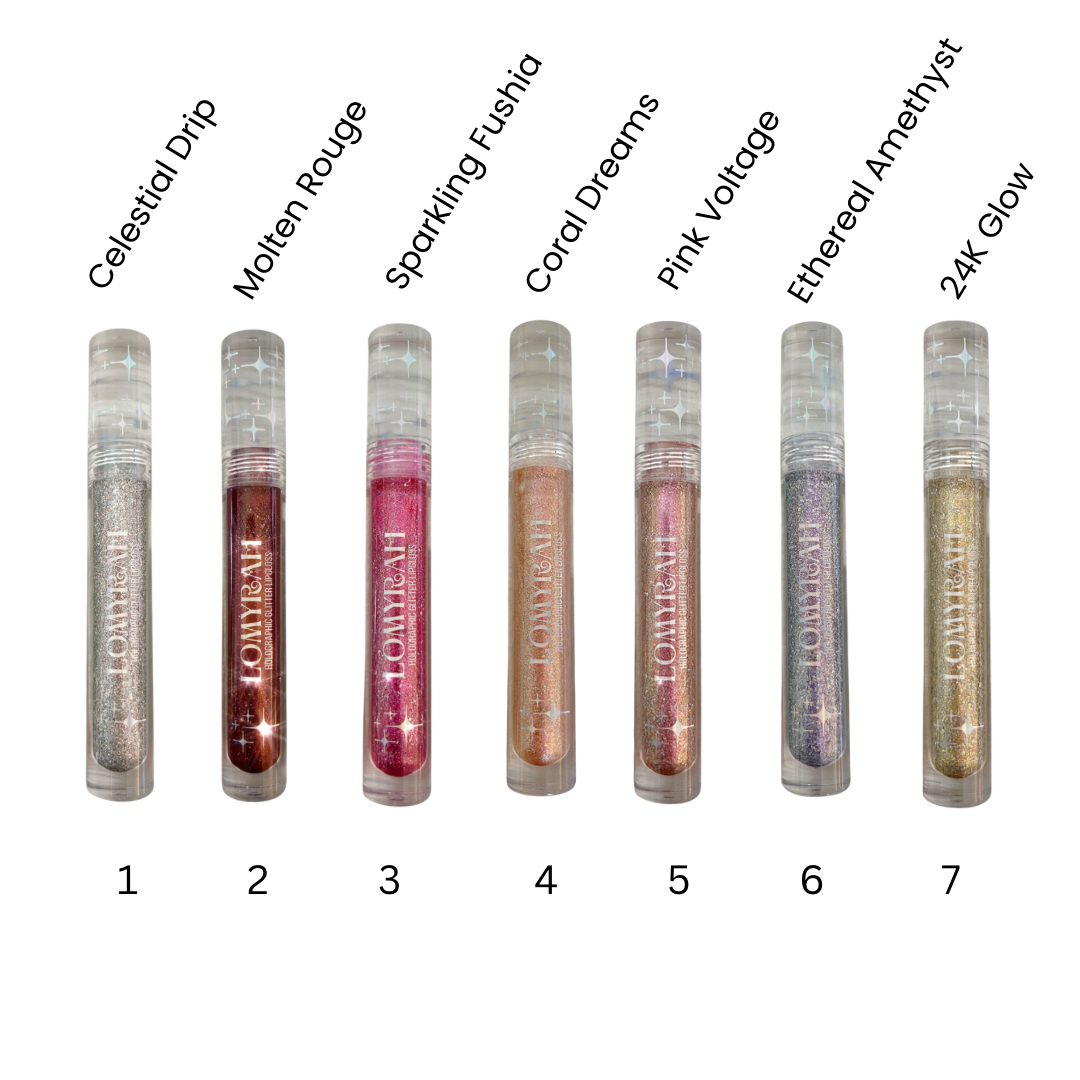- All 7 shades of our holographic glitter gloss in one dazzling bundle